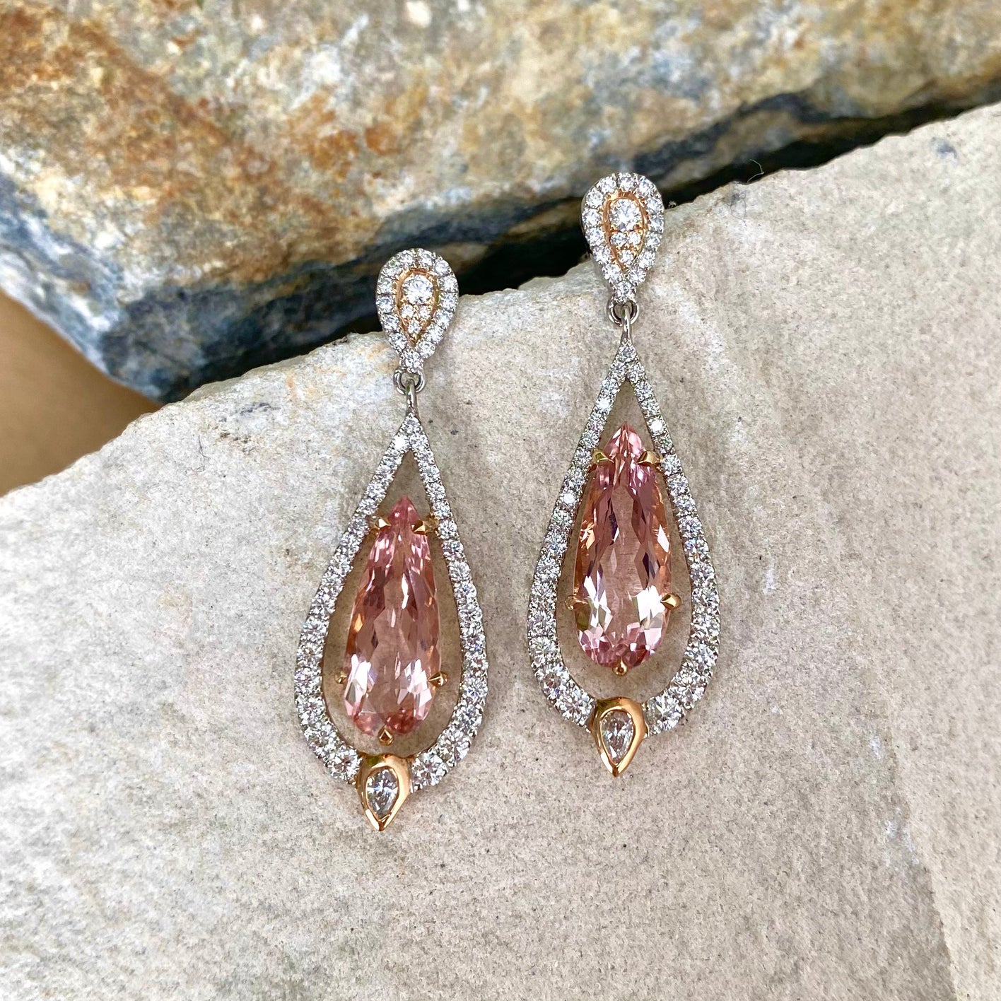 These glamorous chandelier earrings feature a pair of pink morganites and white diamonds, complemented by 18ct rose gold and platinum.