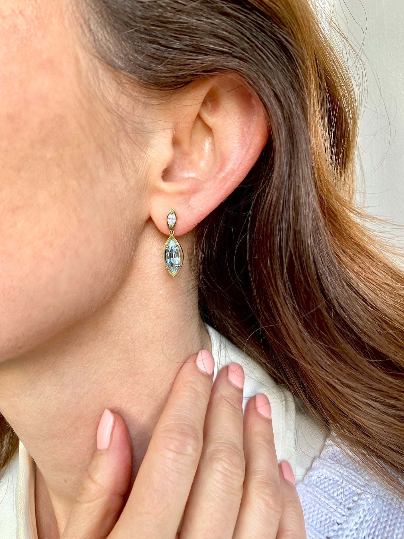 One of a Kind. Aquamarine with Diamond Drop Earrings
