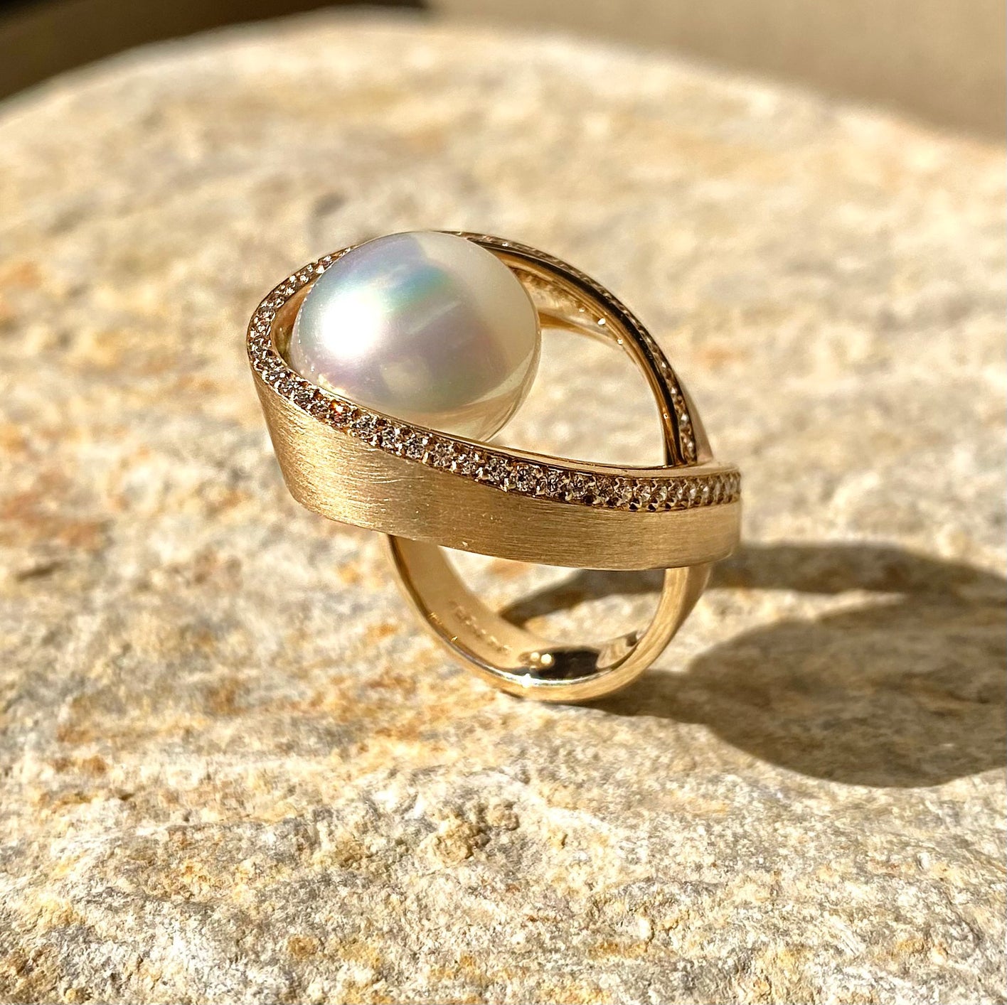 Pearl Creations. Orbit Ring with South Sea Pearl and Diamonds