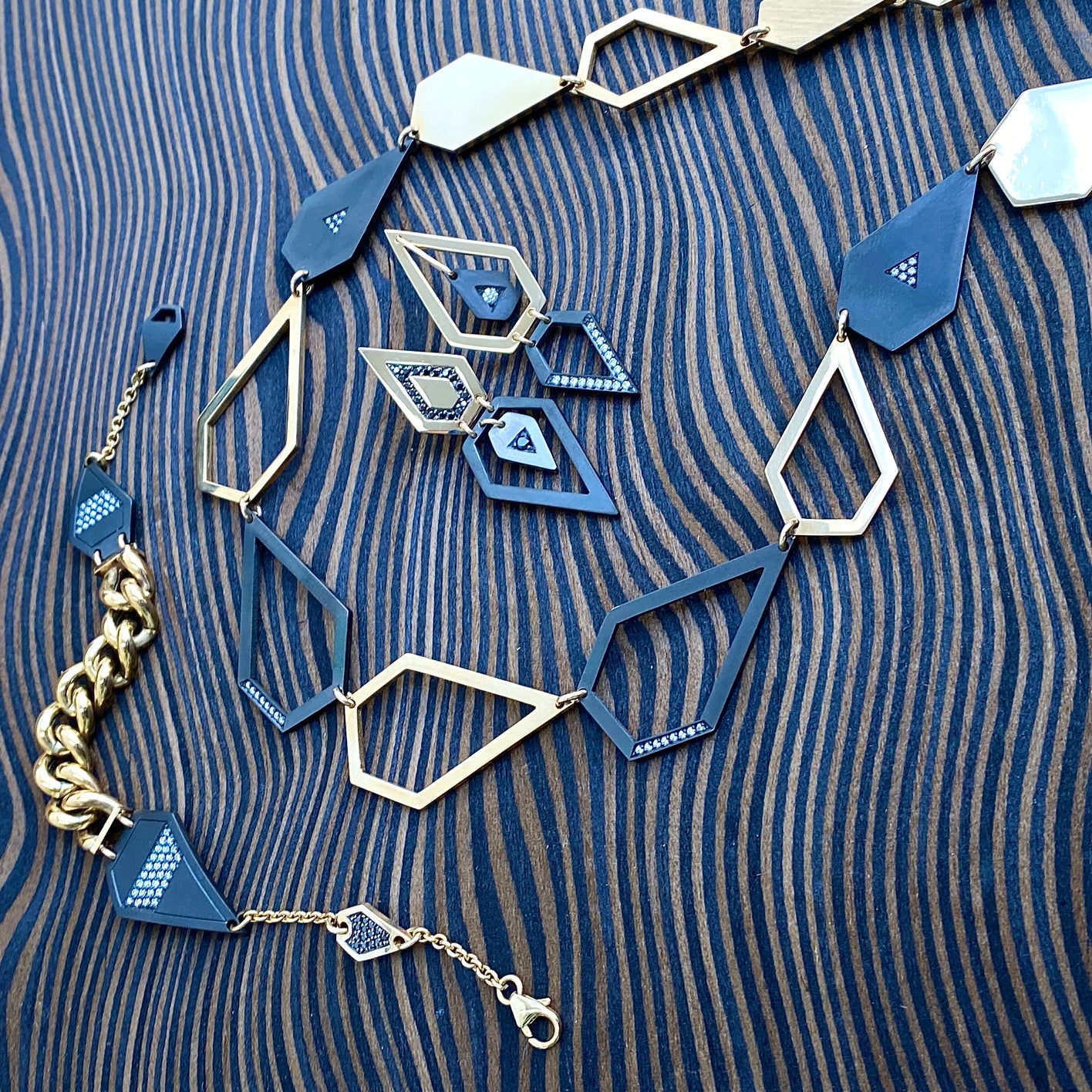 Handmade in our Creations workshop, our Prisma collection will be worn with style for those that love geometry. 9ct yellow gold combines with zirconium and diamond feature links to add a modern twist to any wardrobe. You won't be disappointed!