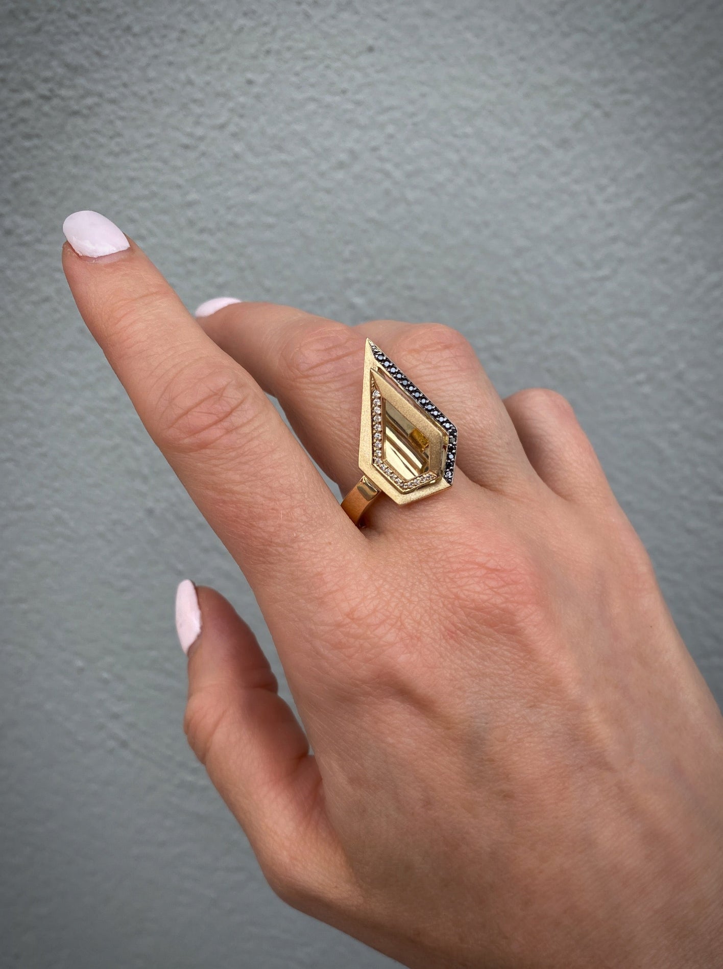 - Prisma. Yellow Gold Black and White Diamond Ring