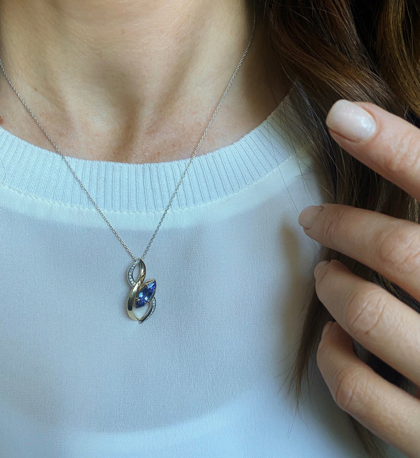 - Signature. Duo Pendant with Sapphire and Diamonds